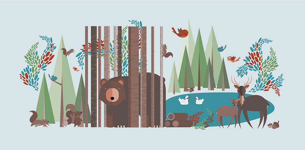 A set of cute woodland creatures to emphasize the rustic setting of a conference in Minneapolis. Illustrations were used in digital collateral as well as large-scale print decals.