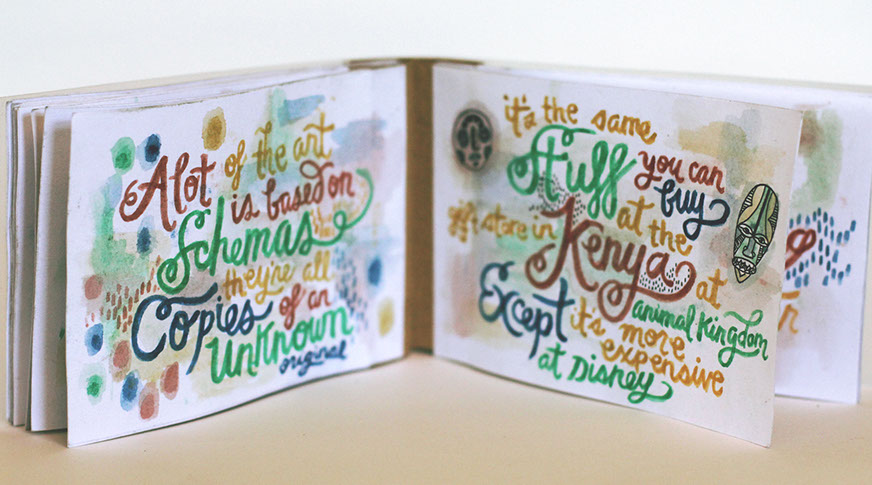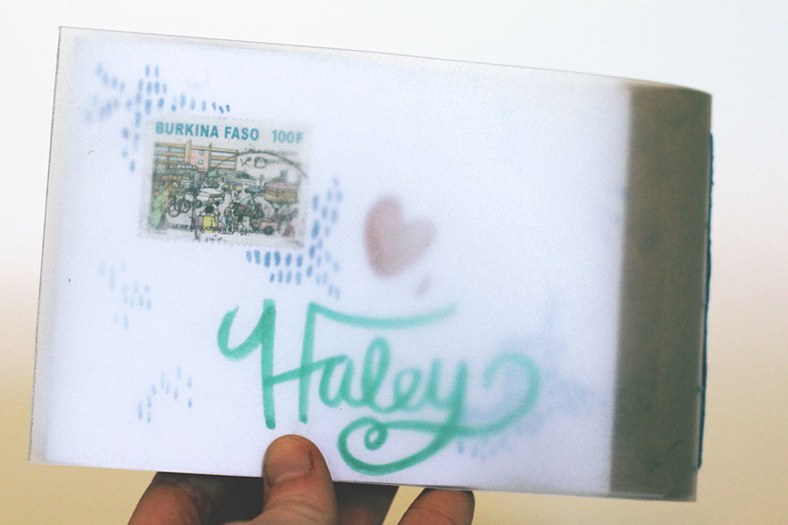 My best friend Haley went to Burkina Faso in 2013 without me. I compiled excerpts from letters she wrote me into a typographic chapbook to highlight her experience in Africa and our unique friendship. While the copy is by Haley, it evokes the two way conversations we had through the post to craft the passage of time.