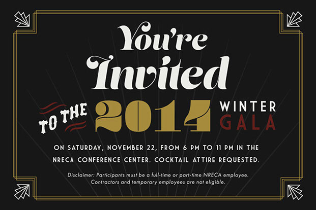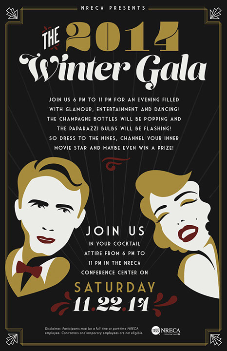 Print collateral developed to promote a vintage Hollywood glamor themed holiday event.